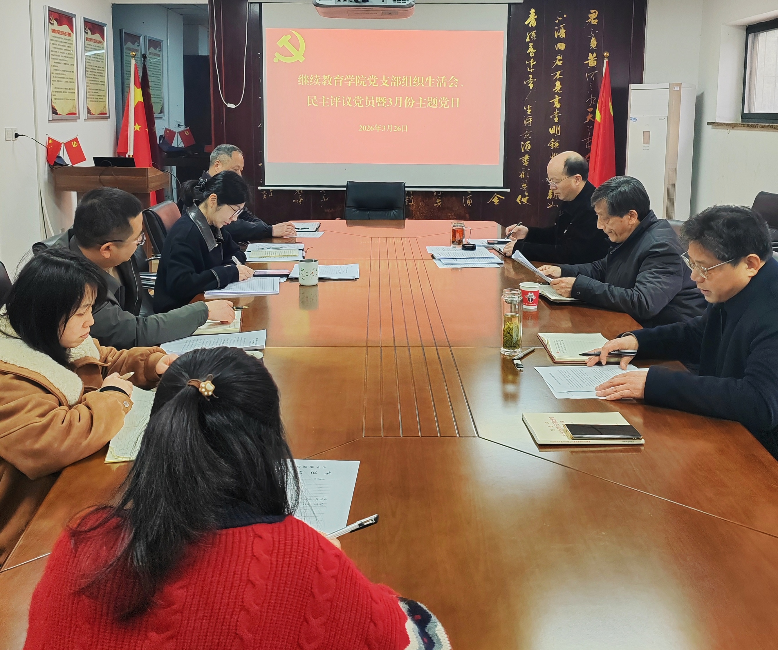 3月26日,继续教育学院党支部召开2025年度组织生活会。机关党委委员、离退休工作处处长汪健到会指导,支部全体党员参加会议,会议由党支部书记韦长发主持。